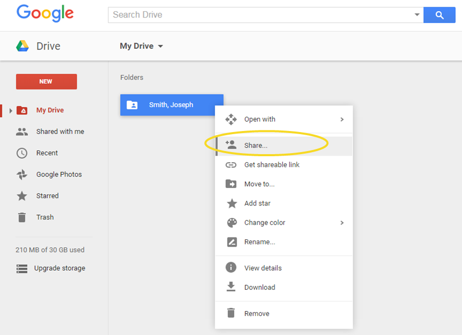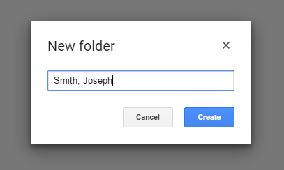 As indicated on your dashboard, please name your folder as "Last Name, First Name". For instance, if your name is Joseph Smith, please name your folder "Smith, Joseph".